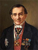 В 1823 г. К. Ф. Толь был назначен начальником штаба 1-й армии, а спустя три года произведен в генералы от инфантерии. В 1829 г. он принял участие в войне против Турции в войсках под командованием Дибича, исполняя должность начальника штаба 2-й армии. Был при осаде Силистрии и в битве при Кулевче, за успешное руководство войсками произведен в графское достоинство Российской империи. В этом же году стал шефом 20-го егерского полка и кавалером ордена св. Георгия 2-й степени. Венцом признания заслуг Карла Федоровича Толя перед Отечеством стало награждение его в 1835 г. орденом св. Андрея Первозванного -высшего ордена Российской империи. |