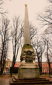 Стелла "Румянцову Победам" в Румянцевском саду Васильевского острова Санкт-Петербурга