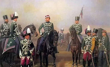 Война с Францией стала серьезным испытанием для М. Е. Храповицкого, вступившего в нее командиром батальона лейб-гвардии Измайловского полка. За отличие в Аустерлицком сражении он был награжден орденом св. Георгия 4-й степени, а за битву при Фридланде в 1806 г. - орденом св. Владимира 4-й степени и прусским орденом «За заслуги». В октябре 1811г. 27-летний полковник Храповицкий назначен командиром лейб-гвардии Измайловского полка, с началом Отечественной войны принял от А. П. Ермолова командование гвардейской бригадой, состоявшей из Измайловского и Литовского гвардейских полков. Бригада отличилась в Бородинском сражении, будучи введенной в разгар сражения на левом фланге армии П. И. Багратиона у деревни Семеновская. Полки бригады проявили небывалые стойкость и мужество, потеряв в ожесточенных схватках более половины своего состава. Сам Матвей Евграфович был ранен в ногу, но остался в строю. Оба гвардейских полка за Бородино награждены Георгиевскими знаменами, а их командир - чином генерал-майора. До 12 декабря 1812 г. М. Е. Храповицкий лечился, затем возвратился в действующую армию. И снова бои, кровопролитные сражения 20 апреля 1813 г. под Люценом, 9 мая - под Бауценом. В августе он принял начальство над бригадой из Измайловского и Егерского полков, входившей в состав 1-й гвардейской дивизии под командованием А. П. Ермолова, полки которой проявили мужество и стойкость в сражениях под Дрезденом и Кульмом и в значительной степени способствовали достижению победы. За участие в битве 17 августа лейб-гвардии Измайловскому полку были пожалованы Георгиевские трубы, а М. Е. Храповицкому - орден св. Анны 1-й степени и знак Железного крести от короля Пруссии. Новое ранение в ногу надолго вывело Храповицкого из строя: он возвращается в свой Измайловский полк лишь 15 марта 1814 г., успев принять участие во взятии Парижа. В 1816 г. Матвей Евграфович стал генерал-адъютантом, членом Государственного совета и Кабинета министров. Тепло проводили своего боевого командира офицеры и солдаты лейб-гвардии Измайловского полка, в котором он прослужил 18 лет, а 7 последних лет командовал им. Впоследствии М. Е. Храповицкий командовал гренадерской дивизией и отдельным гренадерским корпусом, был виленским и гродненским военным губернатором. В 1824 г. он произведен в генерал-лейтенанты, с августа 1831 г. - генерал от инфантерии. К наградам за отличие в боях добавились новые ордена за заслуги: св. Александра Невского и Владимира 1 -й степени, прусский Красного Орла 2-й степени, шведский Меча 1-й степени |